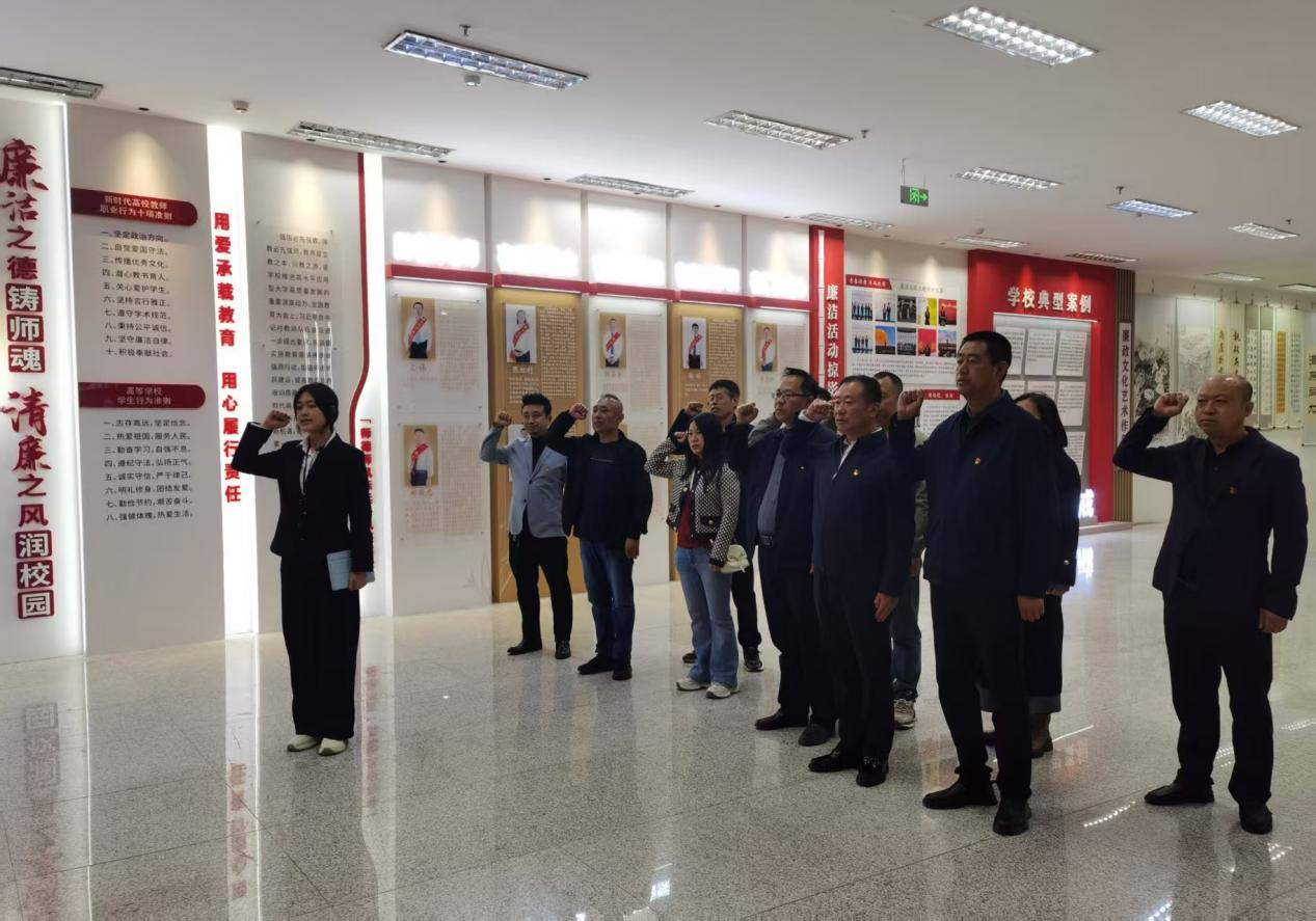 在讲解员引导下,党员们依次参观各主题展区,通过观看警示教育片、学习校内典型案例、体验VR廉政教育、践行正确政绩观学习等,系统学习廉政建设论述、党纪法规及新时代廉洁文化建设要求,接受沉浸式廉政警示教育。参观中,大家认真聆听、深入思考、交流感悟。活动最后,全体党员重温入党誓词,牢记初心使命。